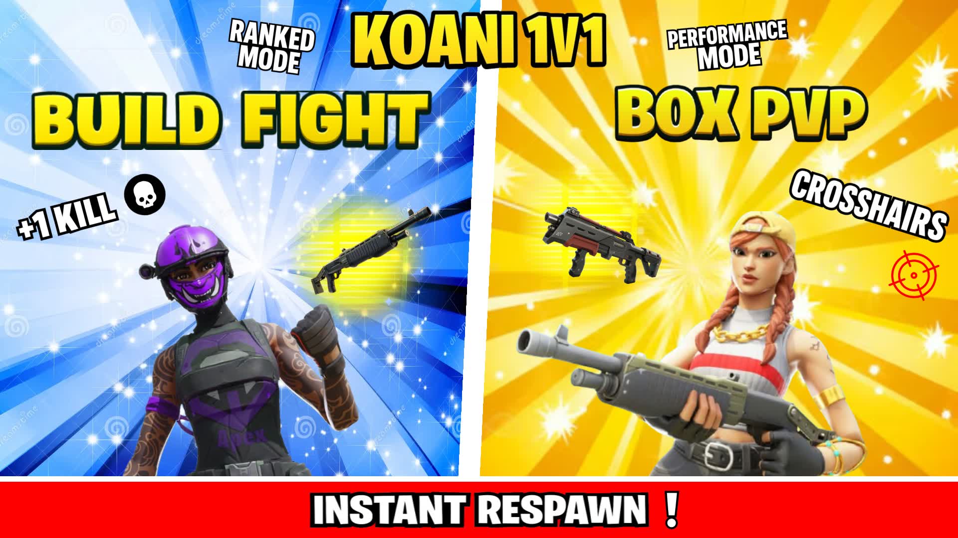 title👑Koani 1v1 Build Fight | Box PVP [2.1]👑Koani 1v1 Build Fight | Box PVP [2.3]descriptionUltra tryhard 1v1 map for real players. Chain fast Box and Build fights. Clean mechanics and pro-level feeling. -1V1 Build Fight -1V1 Box PVP -1V1 piece control -Reset build -Instant respawn -Ranked -Crosshair -XP every 10 min build with uefn Last update 14/10/2025 created by nono madrid05Ultra tryhard 1v1 map for real players. Chain fast Box and Build fights. Clean mechanics and pro-level feeling. -1V1 Build Fight⚔️ -1V1 Box PVP🧱 -1V1 piece control🧩 -Reset build 🔄 -Instant respawn⚡ -Ranked mode🏆 -Crosshair🎯 -Customizable sky🎨 -Slowmotion🐌 -First person view👀 build with uefn Last update 14/11/2025 created by nono madrid05 -