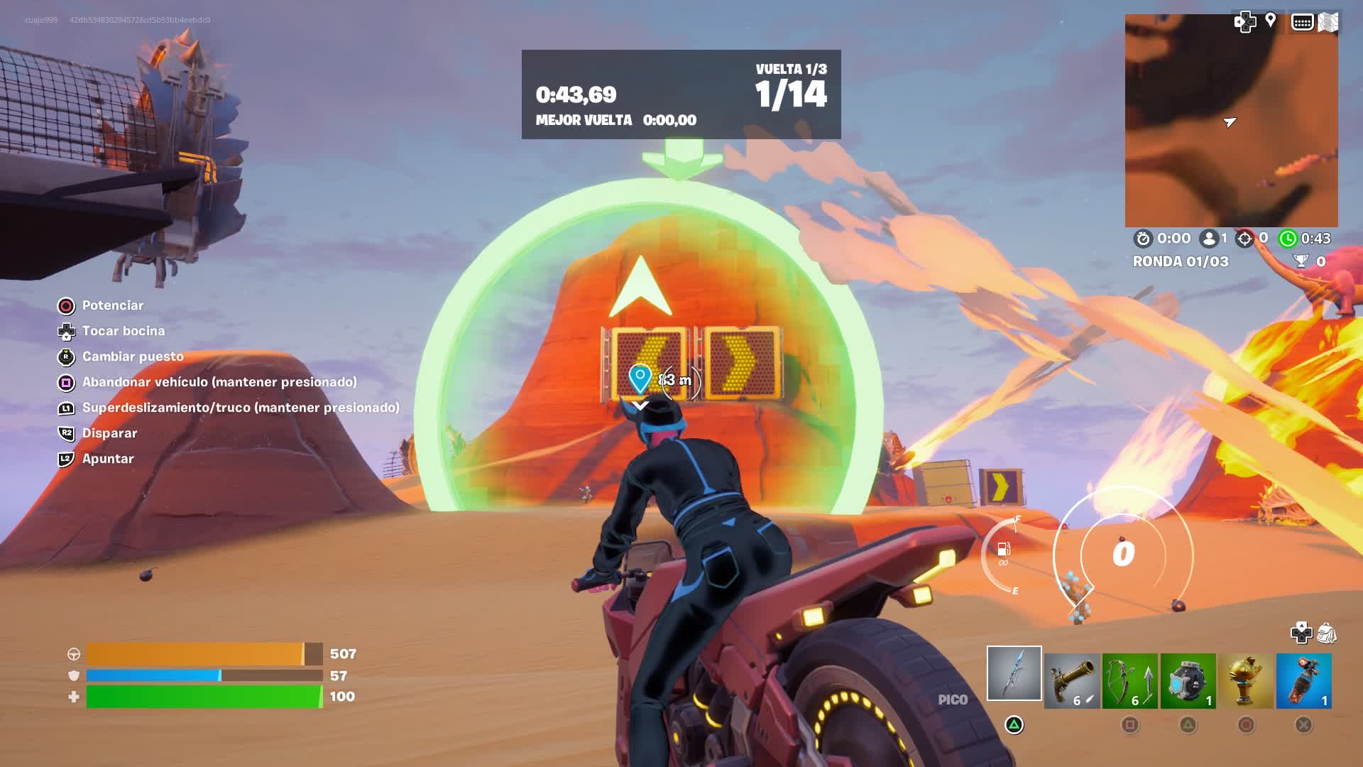 Carrera de motos donde debes hacer lo posible para llegar en primer lugar , usando bien las armas e items en tu camino