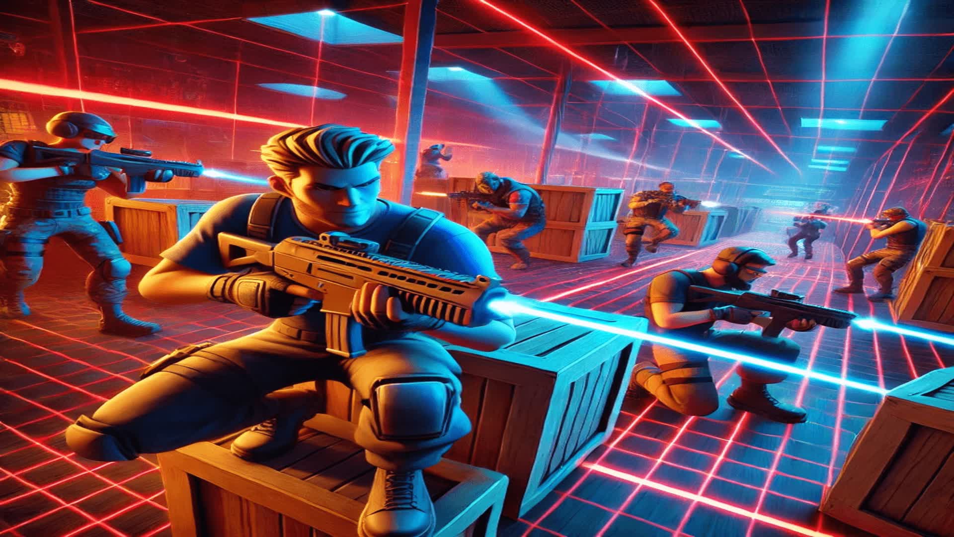 Welcome to 'The Laser Gauntlet,' the ultimate 10v10 Fortnite laser tag arena! In this no-build mode, raw skill, positioning, and strategy define the champion. With 2 teams entering, but only one team emerging victorious, every movement, shot, and strategy is crucial. First team to reach 100 total eliminations wins! Are you ready to face the challenge and emerge as the ultimate laser tag champions? Let the battle commence!