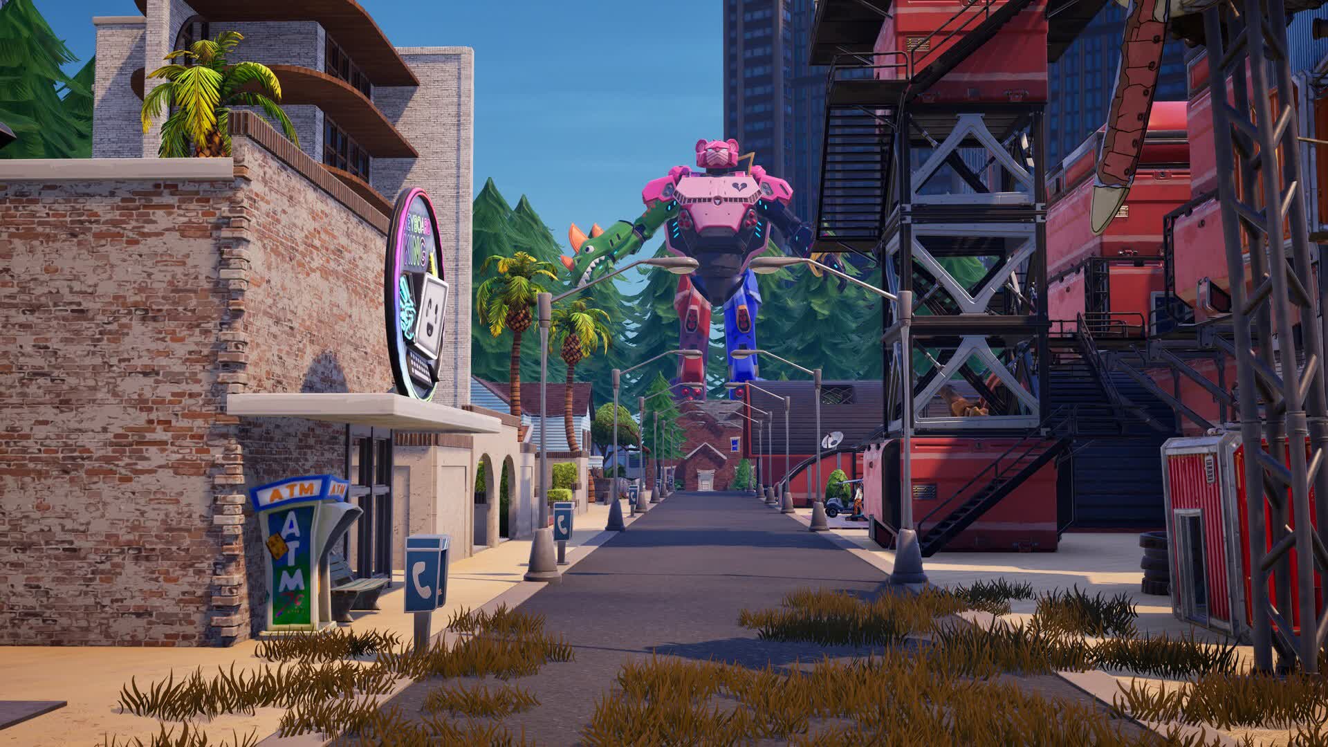 🤖 Towering pink and mech statue serving as the map's impressive centerpiece.